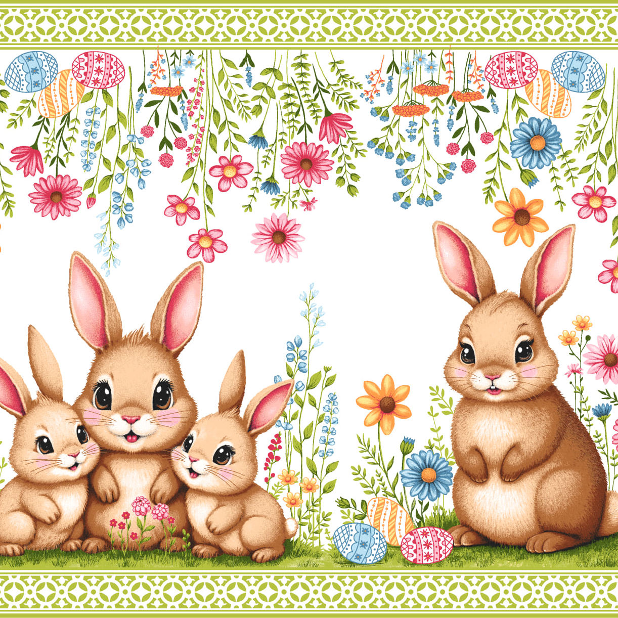 Салфетка дорожка на стол хлопковая Пасхальные зайчики 35004-1 т
