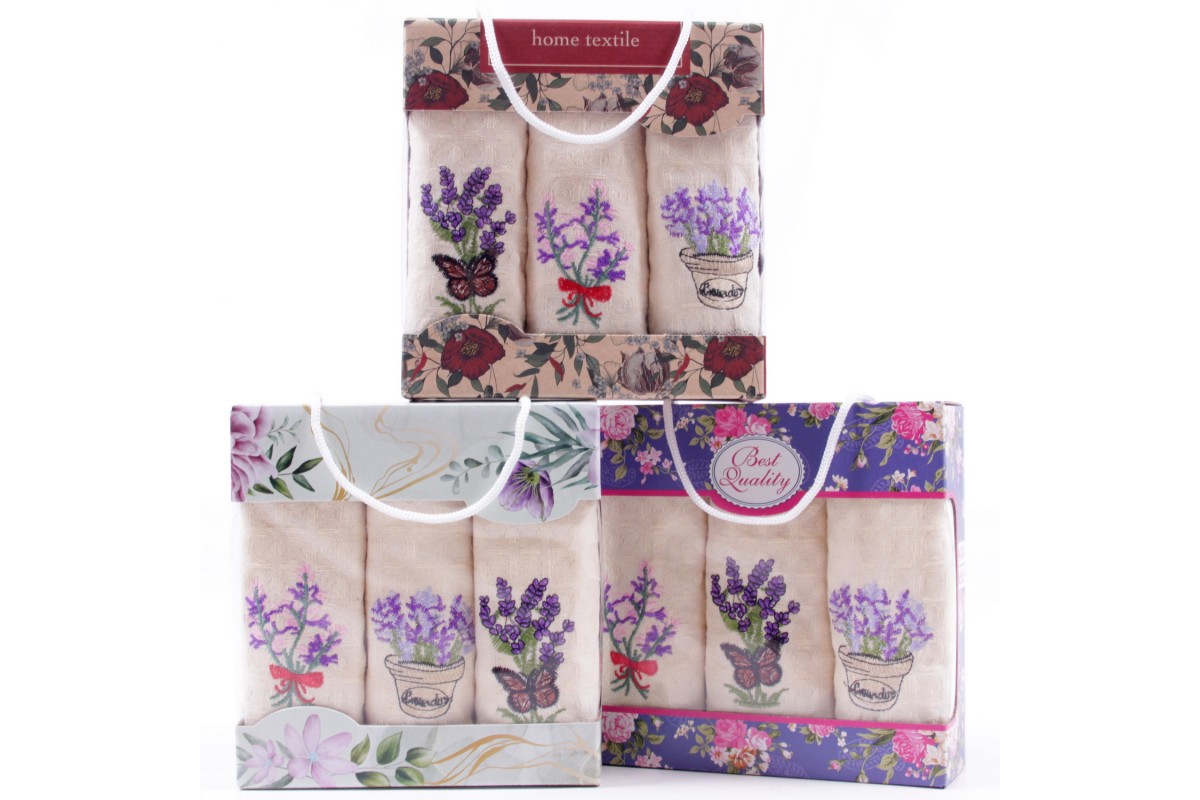 Набор махровых полотенец в коробке МР+МР+МР 77-76