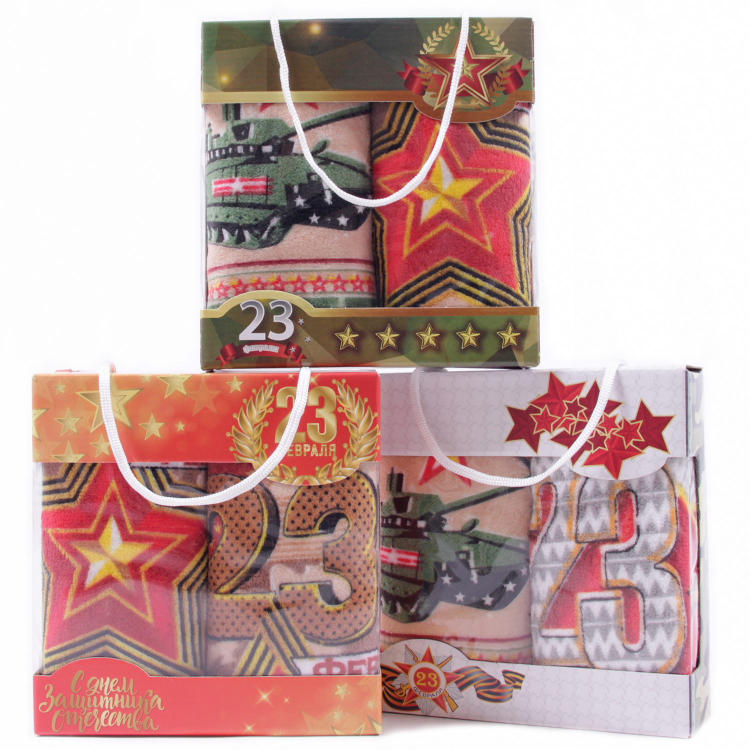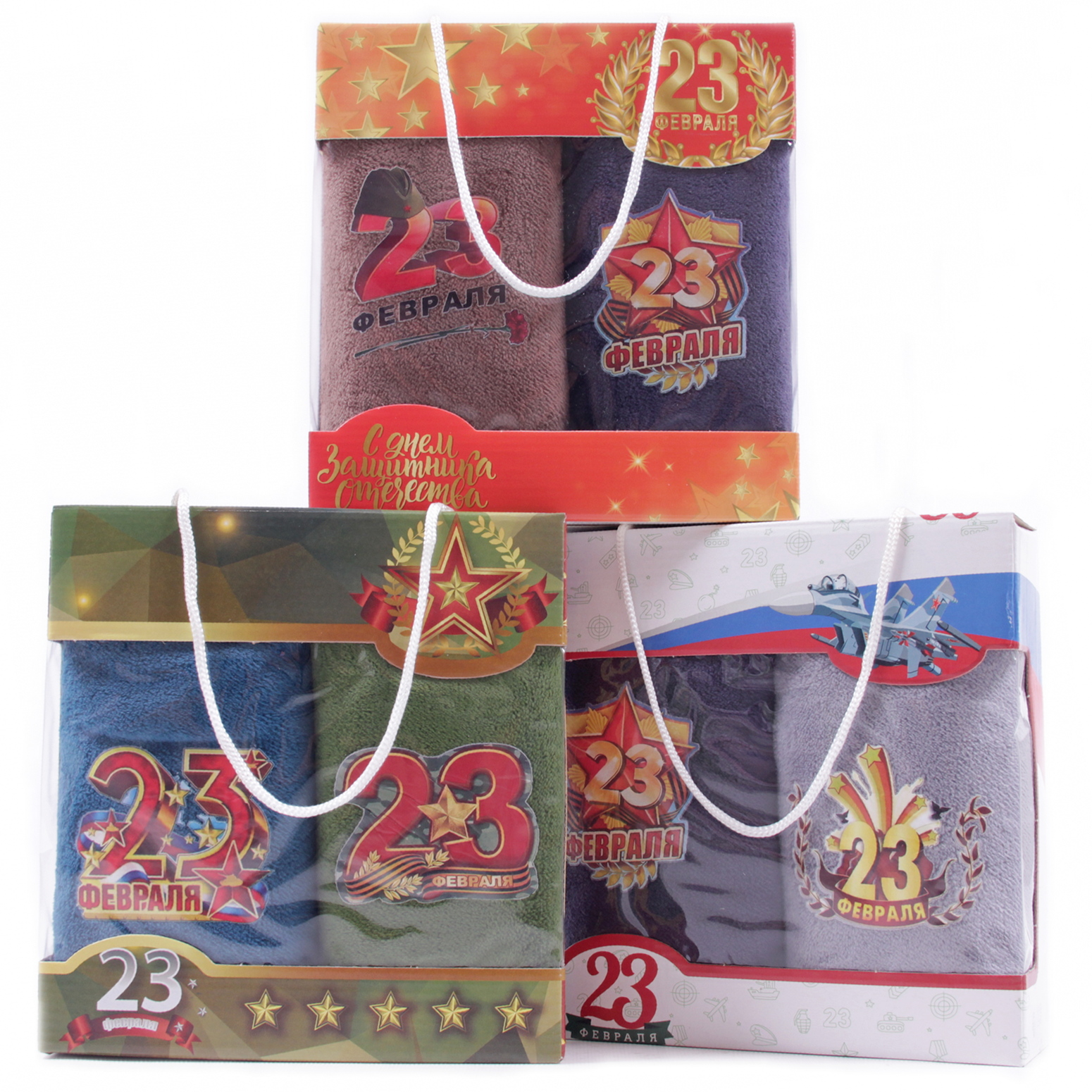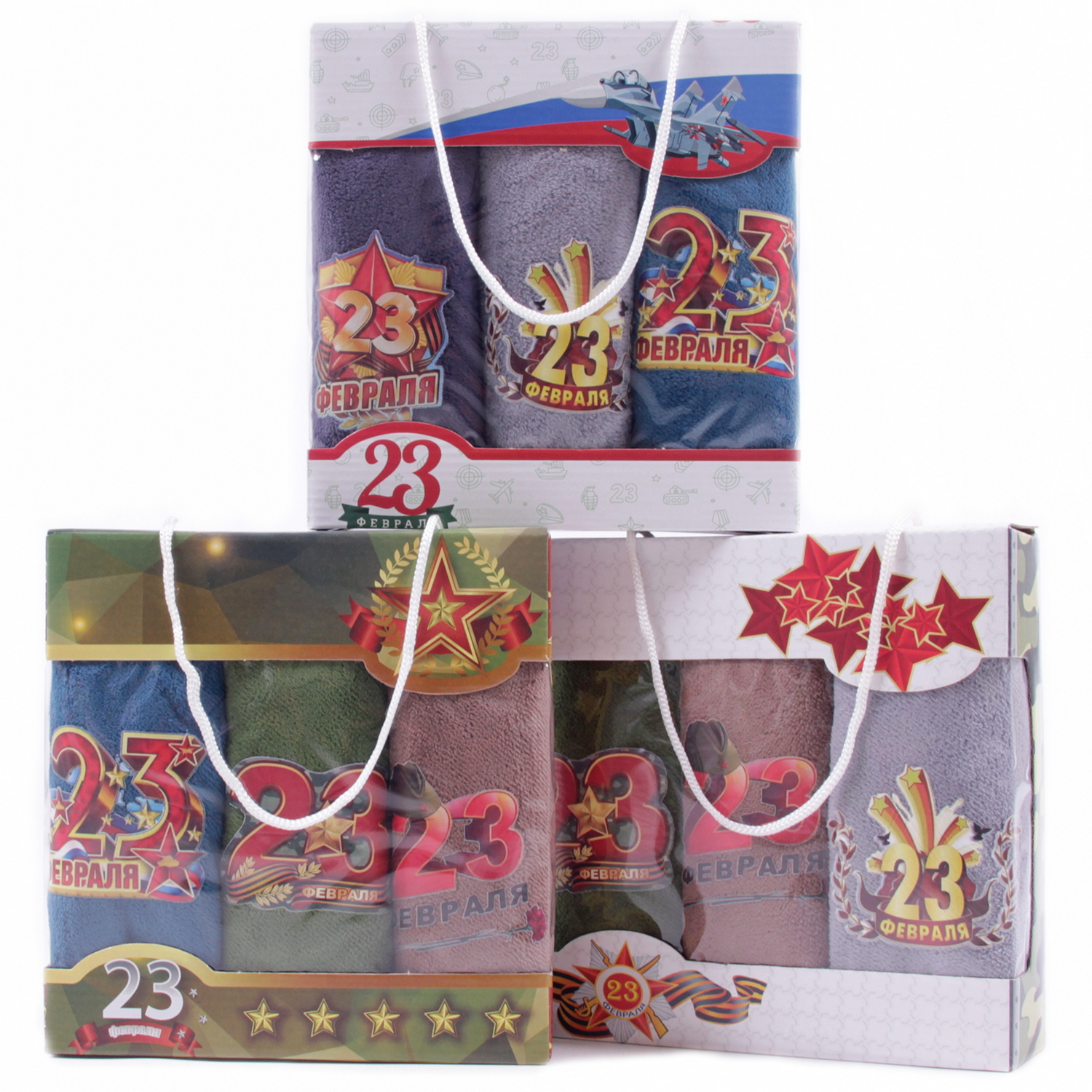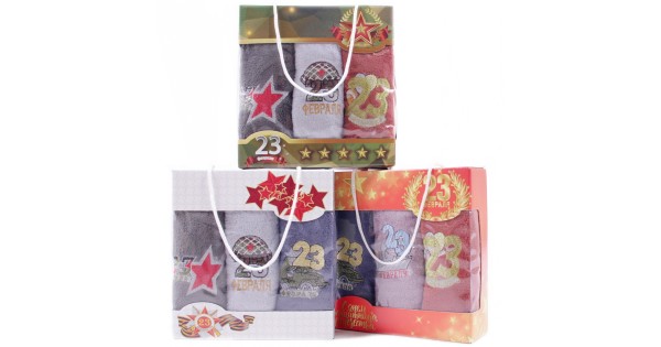 Набор полотенец из микрофибры 23004 в сумочке 23 февраля Р+Р+Р