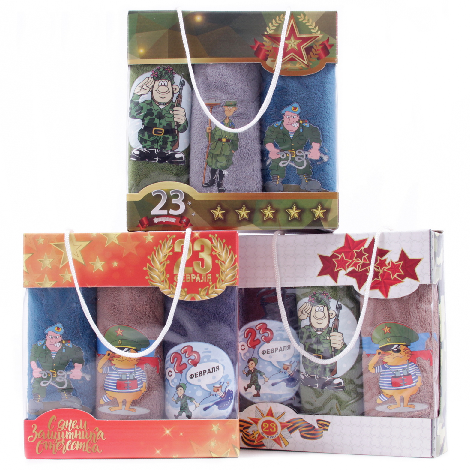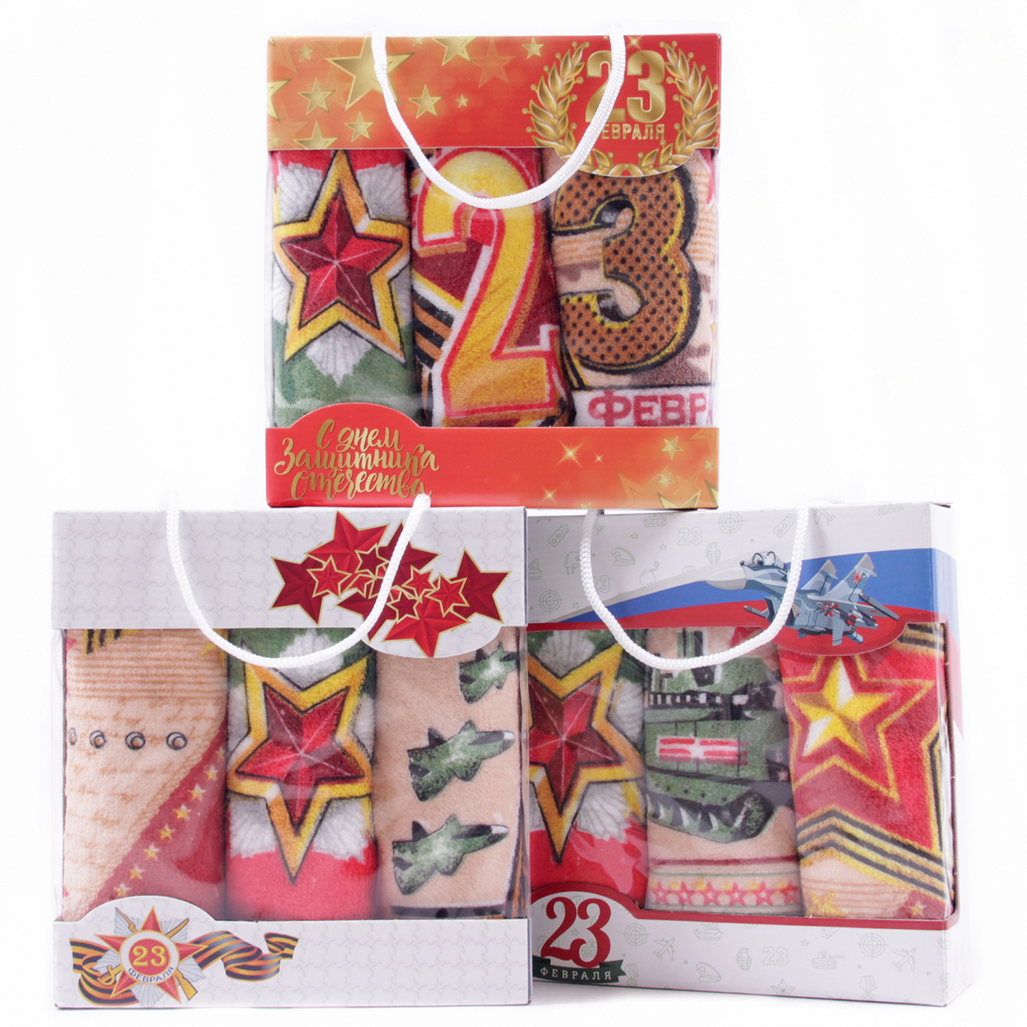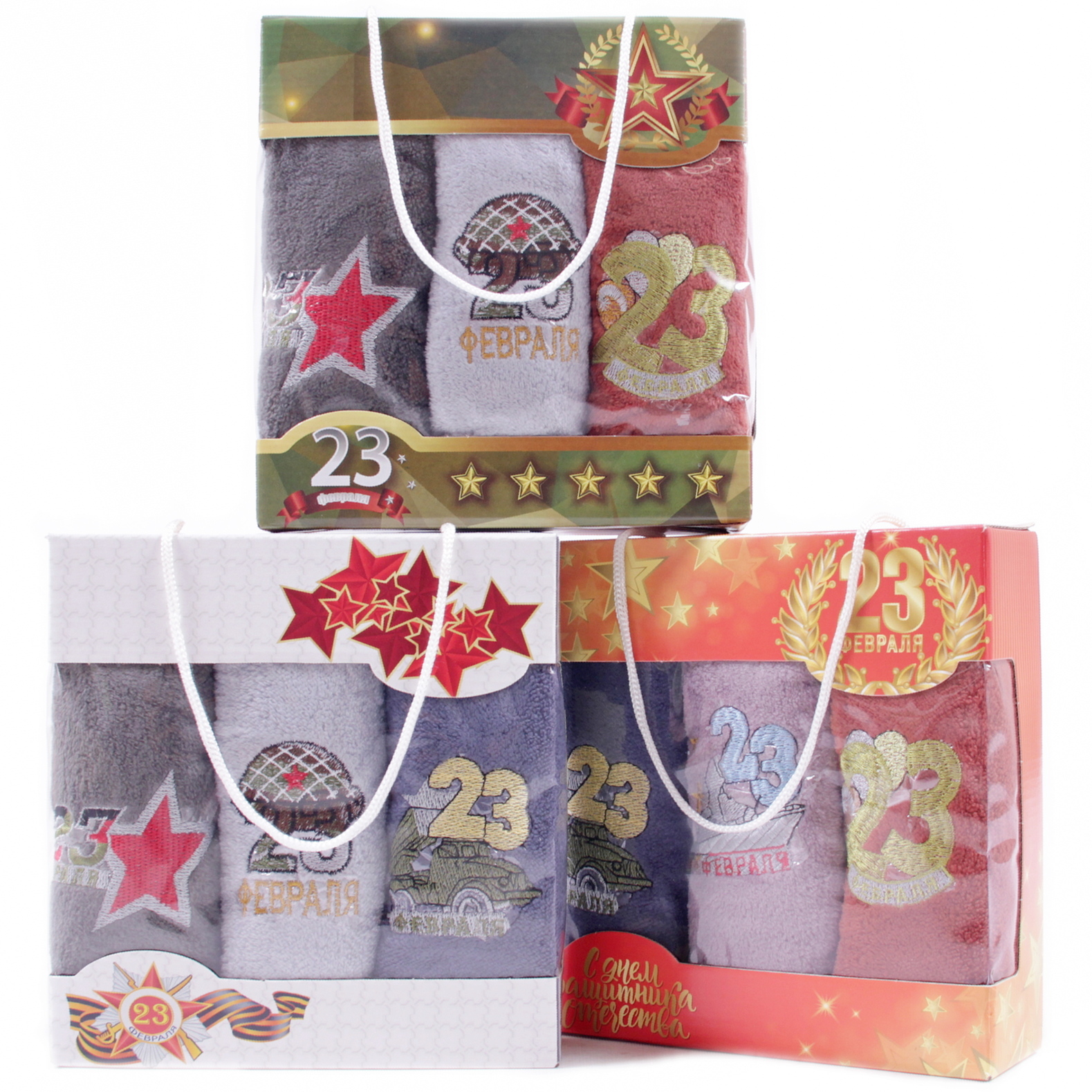 Набор полотенец из микрофибры 23004 в сумочке 23 февраля Р+Р+Р